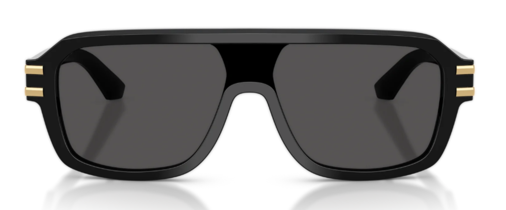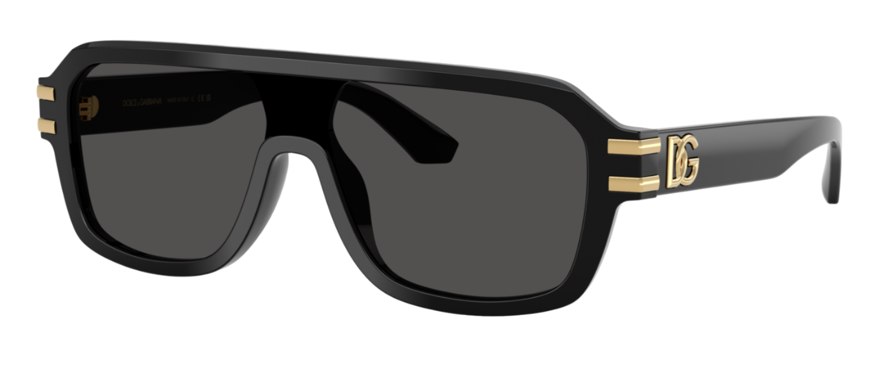 Featured in the Spring/Summer 2025 advertising campaign, this full acetate shield style combines a contemporary flat front with slender temples adorned with metal details.
